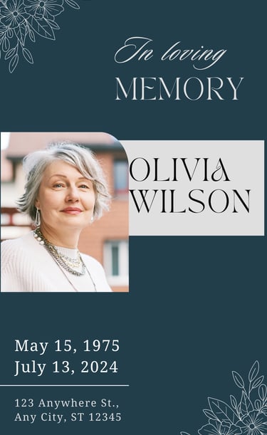 Our services include Order of Service Booklets, Funeral Programmes, Tri-Fold and Celebration of Life Brochures, Memorial and Religious Service Booklets, plus thank-you cards, framed portraits, canvas prints, display boards, posters, and premium keepsakes.